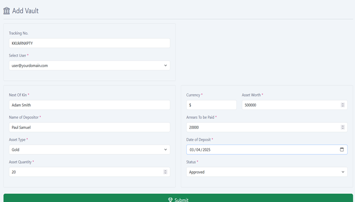 It's easy to use. The admin have to create a vault for users, and a security code will be automatically generated for each vault. On the other end, the users can access the bank vault with the security code. See the video below.